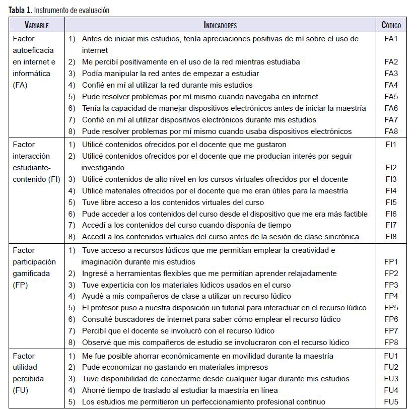 Tabla 1. Instrumento de evaluación
