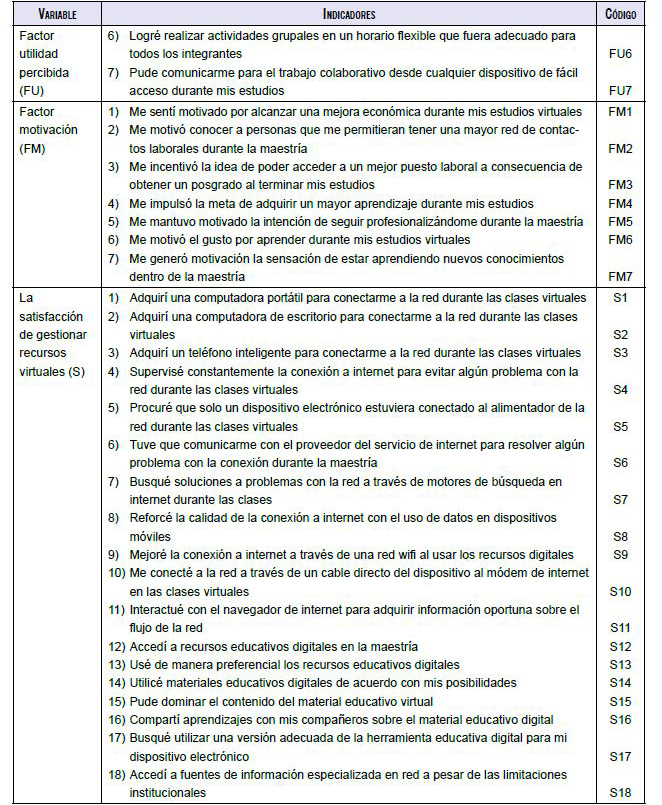 Además, la evidencia científica hace hincapié que la complacencia de los participantes que gestionan recursos virtuales recae en factores como la autoeficacia, la interface, la participación del alumnado y el rendimiento utilitario (Bayrak et al., 2020; Caner & Servet, 2020; Wolverton et al., 2020). Así, cuando los aprendices están satisfechos con sus estudios en la red, puede esperarse que realicen acciones concretas, como procurar tener una conexión a internet, la selección y actualización del aprendizaje, el acceso a bases de datos especializadas y la gestión de aparatos electrónicos para el aprendizaje (Siemens, 2004).