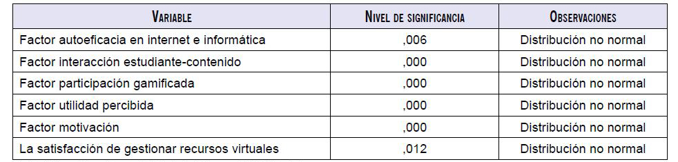 Fuente: elaboración propia a partir del estudio de la normalidad de los datos.