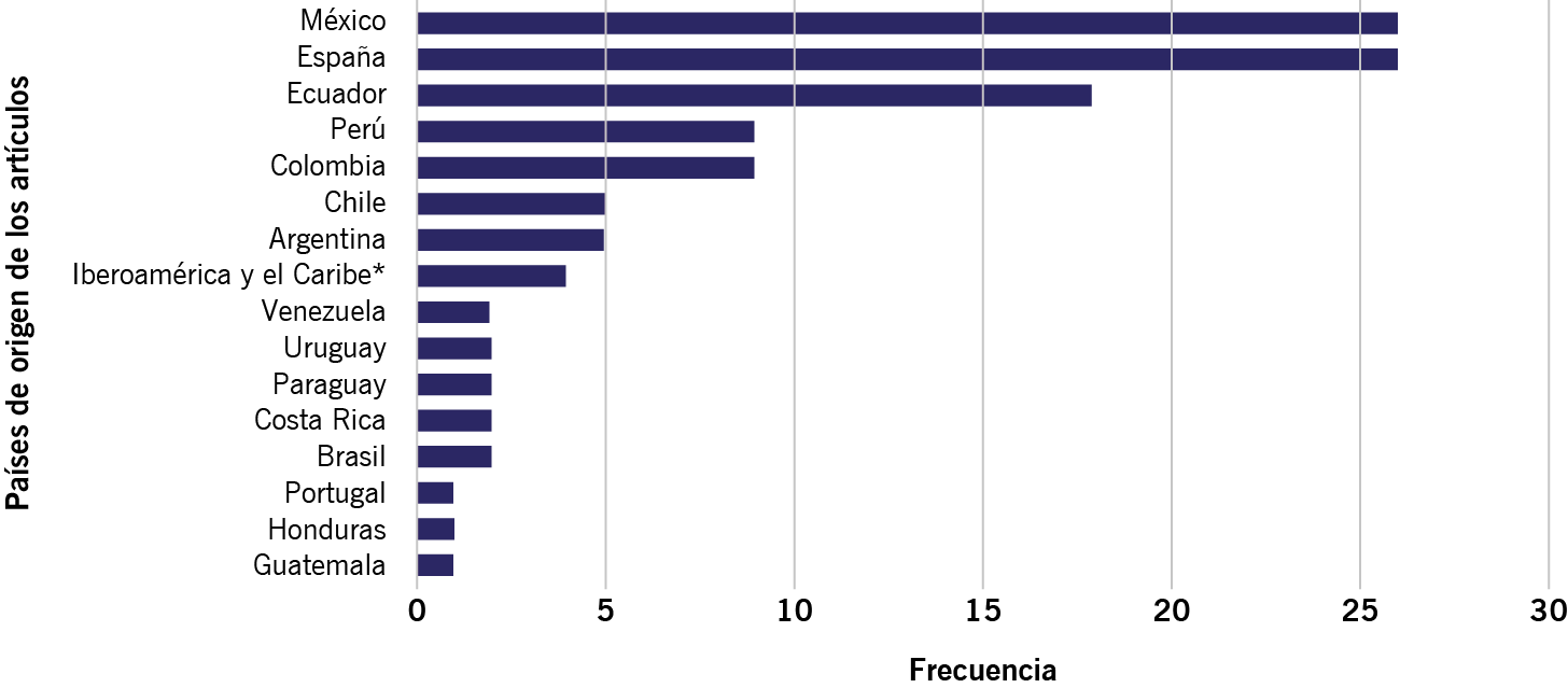 Figura 2. Países de origen de los artículos de investigación.