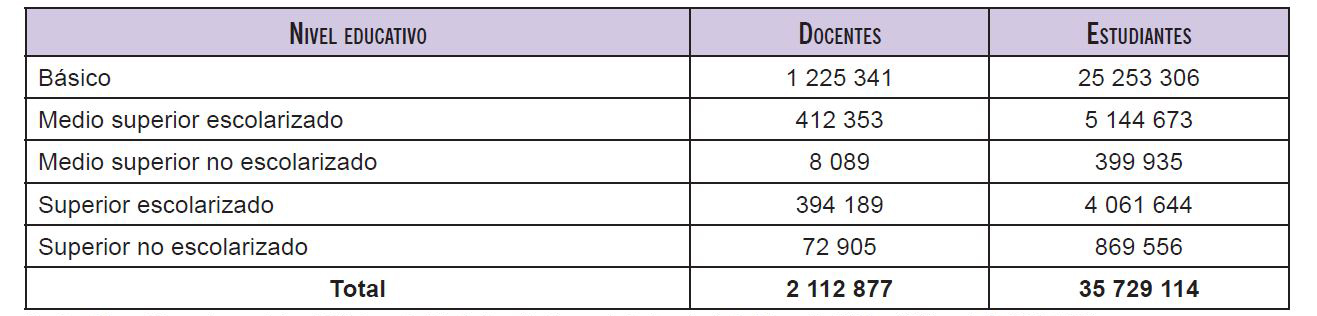 Tabla 1. Matrícula de alumnos y docentes en México, período 2019-2020