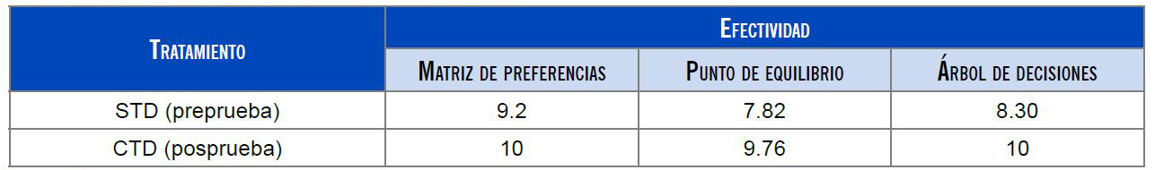 Con base en las métricas obtenidas, en esta sección se presenta un análisis exploratorio. En las tablas 2, 3 y 4 se muestran los resúmenes estadísticos de la efectividad, la eficiencia y el costo respecto a los dos tratamientos estudiados.