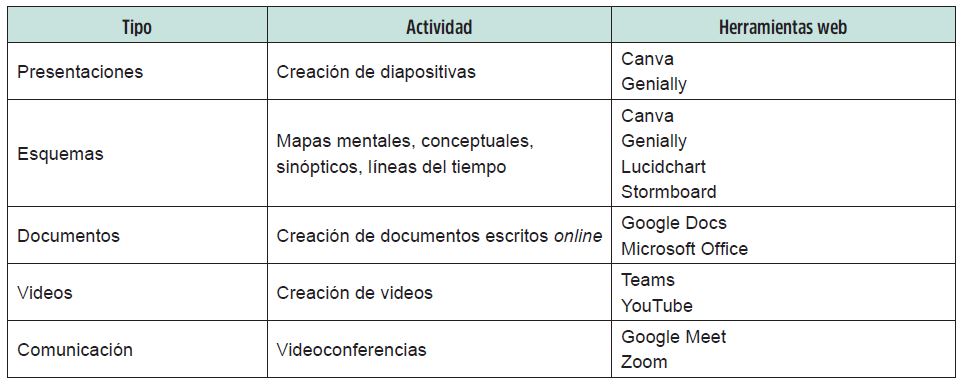 Tabla 1. Actividades y herramientas web utilizadas en el Taller de Diseño de Proyectos de Investigación Científica
