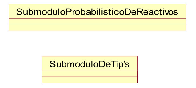 Estos dos submódulos se muestran gráficamente en la figura 4, los cuales constituyen el módulo predictor probabilístico y Tips, en el cual el submódulo probabilísticos de reactivos contendrá el conjunto de reactivos ya diferenciados por cada una de las inteligencias a tratar en el presente trabajo; el submódulo Tips incluirá las diferentes sugerencias según las estrategias pedagógicas más adecuadas diferenciadas por el perfil del usuario (Rodríguezet al., 2010).