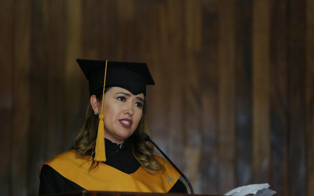 La rectora de UDGVirtual, doctora María Esther Avelar, informó que hoy egresan estudiantes de 22 estados del país y de Estados Unidos, lo que refleja la potencialidad de la modalidad virtual para ampliar la cobertura.