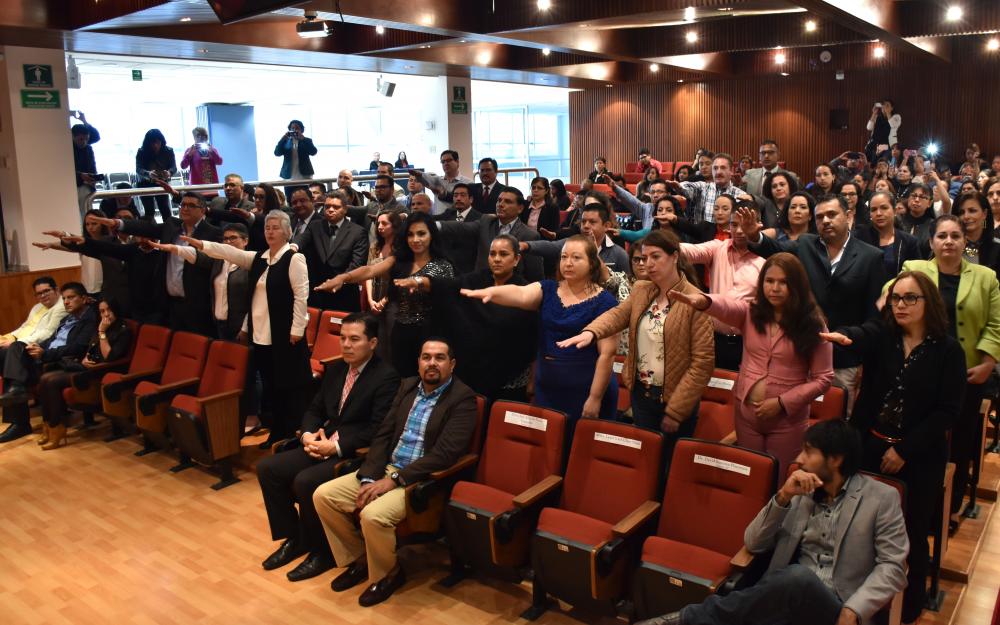 54 egresados de seis programas educativos de licenciaturas en línea de UDGVirtual , quienes concluyeron satisfactoriamente su Seminario de Titulación en el calendario 2018-A, rindieron protesta como licenciados, en un acto académico celebrado el pasado 6 de octubre en el auditorio Valentín Gómez Farías, del Sistema de Educación Media Superior.