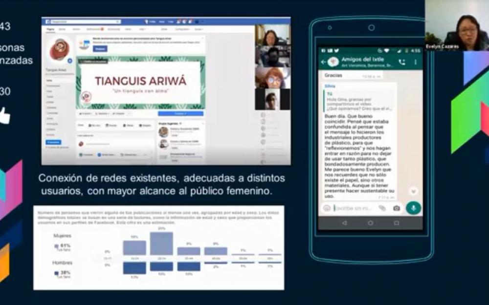 La egresada mencionó que la red trabaja desde distintas plataformas digitales, cuenta con su propia página y cuenta también con una página en Facebook, desde la cual es posible adquirir las artesanías y beneficiar directamente a los productores.