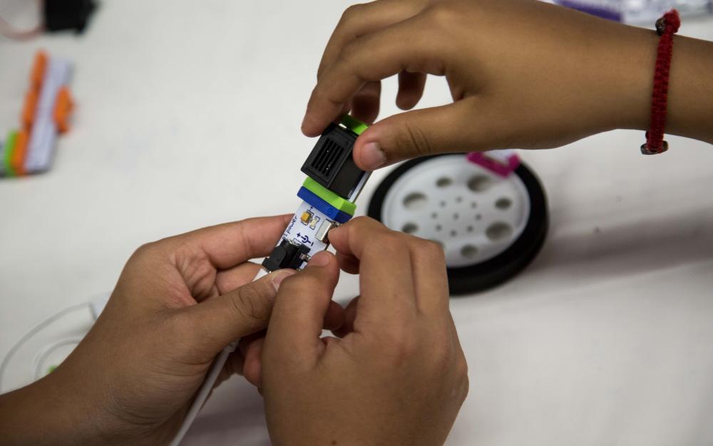 La dinámica consistió en ubicar a los menores en un entorno con máquinas, que imaginaran cómo funcionan y después trabajar con un kit de herramientas de piezas electrónicas como dispositivos para control, trasmisores de energía, conectores, focos y ventiladores, entre otros.