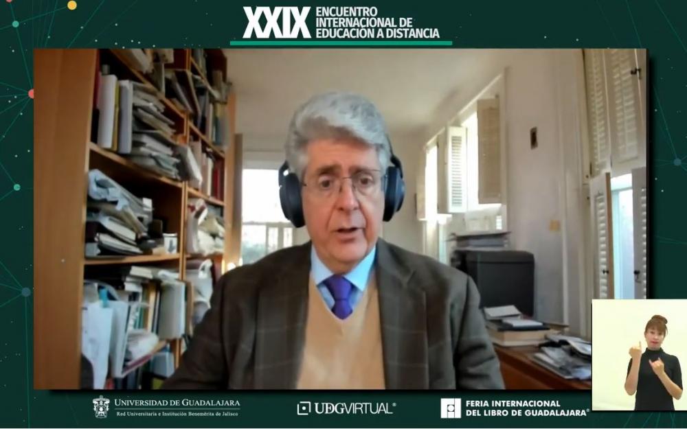“Las universidades tienen más que una oportunidad una responsabilidad de convertirse en artífices de un renacimiento que va a ser necesario no solamente en materia educativa sino en todos los ámbitos que han sido afectados por la pandemia”, comentó el experto, durante la conferencia “¿Cómo puede la universidad contribuir a construir un futuro mejor?”, con la que abrió el programa de actividades del XXIX Encuentro Internacional de Educación a Distancia que organiza UDGVirtual en el marco de la Feria Internacional del Libro de Guadalajara.