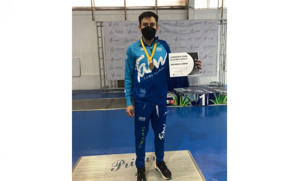 Como parte de su preparación para competir en la Copa Mundial de Esgrima, el egresado de la licenciatura en Tecnologías e Información de UDGVirtual Josué Morales Lizárraga participó en el certamen estatal que organizó la Asociación de Esgrima de Jalisco, el pasado 20 de febrero, en el que obtuvo medalla de oro, representado a la Asociación de Esgrima de Tamaulipas.