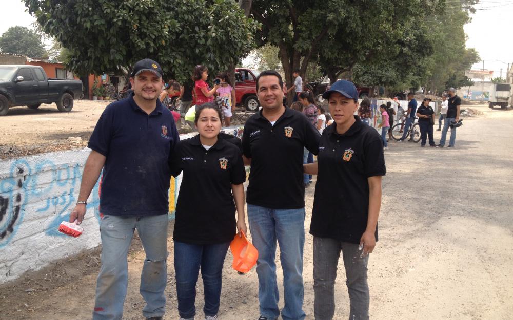 Los estudiantes de UDGVirtual, asesorados por el maestro José de Jesús Aceves y la doctora Rosana Ruíz Sánchez, coordinadora de la licenciatura en Seguridad Ciudadana, consiguieron que asociaciones civiles y empresas apoyaran la iniciativa y donaran pintura y alimentos, pues durante varios meses se han acercado a los habitantes de “La Ferro” y a sus problemáticas.