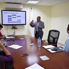 En la reunión también estuvieron presentes los directivos de UDGVirtual, maestro Adán Sinohé Sánchez Rodríguez, coordinador de Planeación; maestro Gladstone Oliva Íñiguez, director de Tecnologías; maestra Diana de León Cerda, coordinadora de la licenciatura en Desarrollo Educativo; maestro Eduardo González Álvarez, coordinador de Medios y Tecnologías; licenciada Marcela Ochoa Reynoso, responsable del Programa de Tutorías, así como el maestro Luke Alexander Butler, responsable del Centro de Idiomas.
