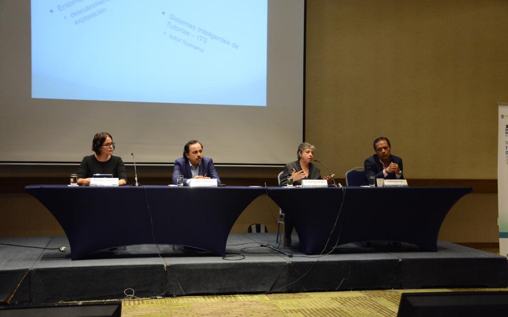 Por su parte la doctora Adriana Peña Pérez Negrón, investigadora del Centro Universitario de Ciencias Exactas e Ingenierías de la Universidad de Guadalajara, habló sobre cómo ha evolucionado el aprendizaje asistido por computadora debido principalmente al avance tecnológico, lo cual ha originado la integración de elementos como la realidad virtual.