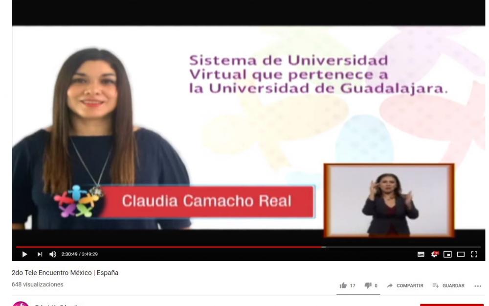 Compartir la experiencia de UDGVirtual en la tarea de ofrecer una educación incluyente para las personas con discapacidad, fue el propósito de la participación de la académica Claudia Camacho Real, en el 2do Tele Encuentro México-España sobre Accesibilidad Audiovisual para Sistemas Educativos, Industrias Creativas y Medios de Comunicación, realizado el pasado 16 de julio.