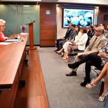 La Rectora destacó el trabajo de colaboración entre UDGVirtual y el Itei, con la maestría en Transparencia, la realización de cinco diplomados en la materia , la organización del “Simposio Retos de Seguridad Ciudadana y el Mando Único Policial en Jalisco”, así como tres ediciones del “Congreso Internacional de Seguridad Ciudadana y Desarrollo Urbano”.