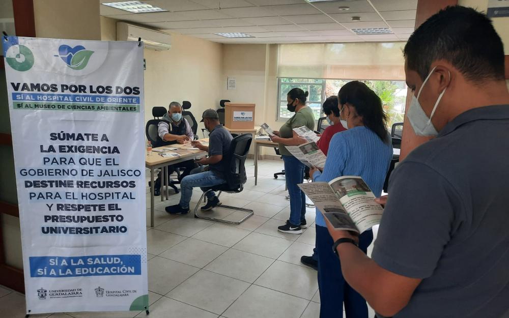 A la comunidad universitaria y a la sociedad en general se les invita a acudir a firmar una carta para exigir al Gobierno de Jalisco que destine los recursos necesarios para la construcción del Hospital Civil de Oriente en Tonalá, sin disminuir el presupuesto de la Universidad de Guadalajara que está destinado para el Museo de Ciencias Ambientales.